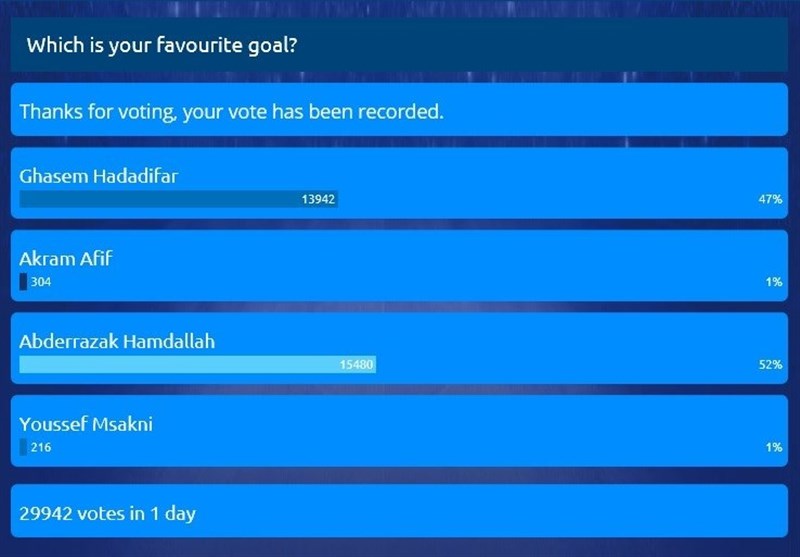 گل قاسم حدادیفر هم با کسب 47 درصد آرا (13 هزار و 942 رأی) در مکان دوم این نظرسنجی قرار گرفت.