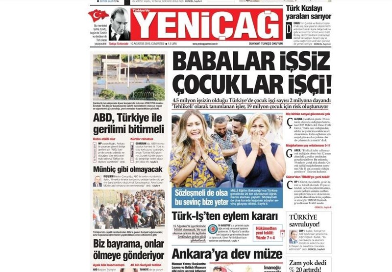 به گزارش گروه بینالملل خبرگزاری تسنیم، بسیاری از روزنامههای ترکیه، امروز در عکس و تیتر صفحه نخست، ایجاد منطقه امن در شمال سوریه را برجسته کردهاند.