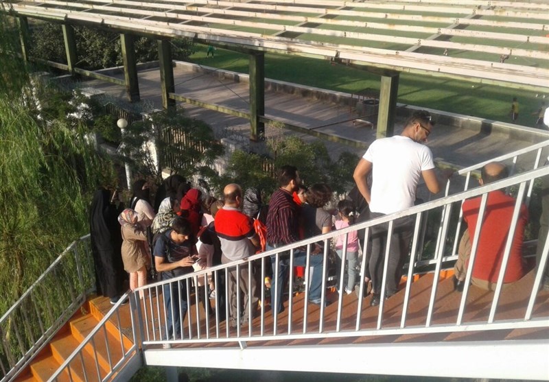 * تعدادی از هواداران که بین آنها تماشاگر خانم هم زیاد بود از روی پل عابر پیاده نزدیک ورزشگاه نظارهگر تمرین بودند.