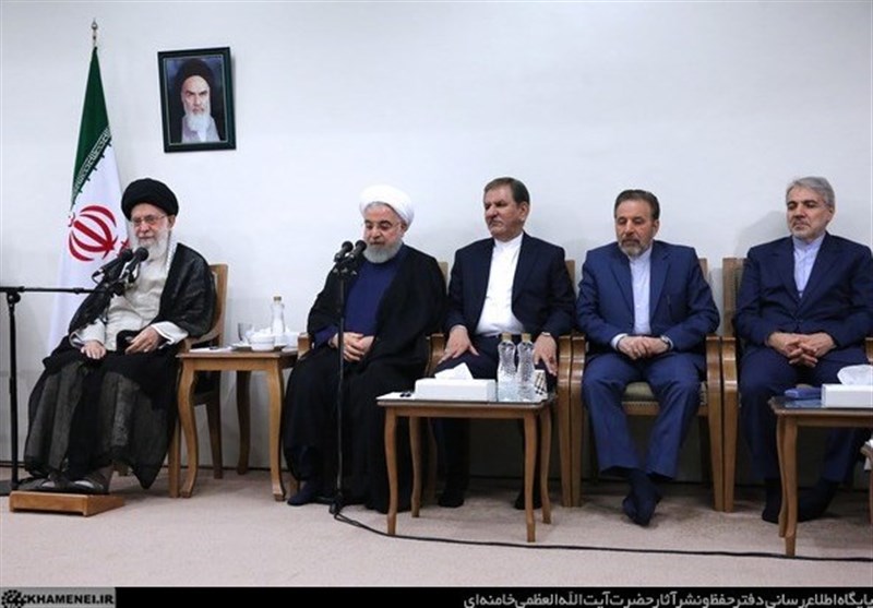 رهبر انقلاب اسلامی در ابتدای این دیدار با تبریک عید سعید غدیرخم و سالروز ولادت حضرت امام موسیبن جعفر علیه السلام و همچنین هفتهی دولت، و گرامیداشت یاد و خاطره شهیدان رجایی و باهنر گفتند: هفتهی دولت شاخص و نشانهای است که با یادآوری خدمات و تلاشهای یکسال گذشته، از یک طرف میتواند مایه دلگرمی باشد و از طرف دیگر، چنانچه این تلاشها با دو شرط مهم «حرکت جهادی» و «نیت الهی» همراه شود، زمینهساز برکات زیادی در جامعه خواهد شد.
