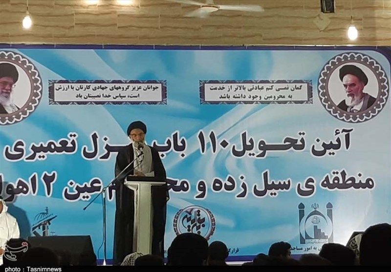 تولیت حوزه علمیه بقیه الله(عج) با اشاره به تحویل بیش از 110 باب منزل تعمیری منطقه سیل‌زده و محروم عین دو اهواز به عنوان هدیه رهبرمعظم انقلاب و نظام مقدس اسلامی، ادامه داد: مردم در روند تعمیر و بازسازی همراه و پای کار باشند تا سختی‌های ابتدای راه را پشت سر بگذاریم.