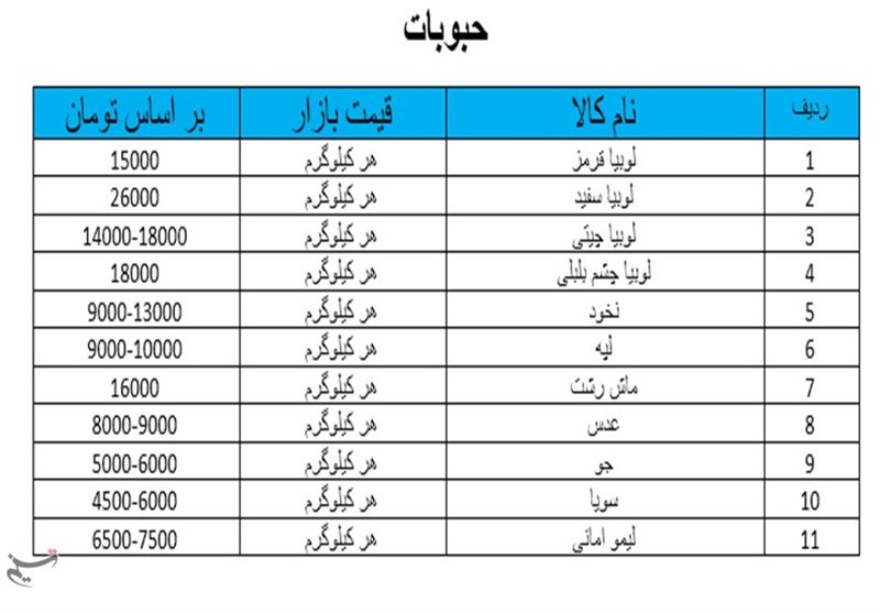 قیمت انواع میوه، حبوبات و مواد پروتئینی در سنندج؛ سه‌شنبه 5 شهریورماه + جدول