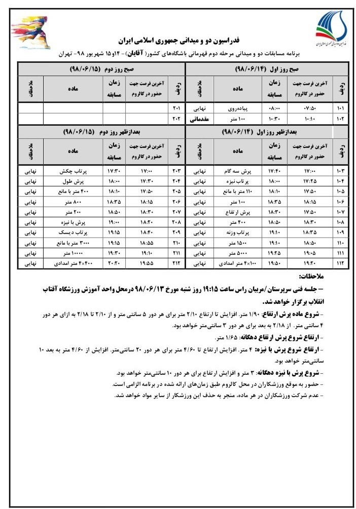 به گزارش خبرگزاری تسنیم، مرحله دوم رقابتهای لیگ دوومیدانی باشگاههای کشور طی روزهای 14 و 15 شهریور در بخش مردان و 21 و 22 شهریور در بخش بانوان به میزبانی مجموعه ورزشی آفتاب انقلاب تهران برگزار خواهد شد.