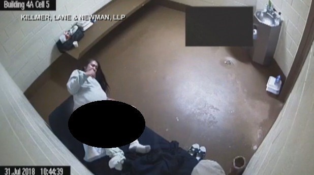 براساس دوربینهای نظارتی زندان، خانم سانچز روی تخت دراز کشیده و هنگام زایمان در حال جیغ کشیدن است.