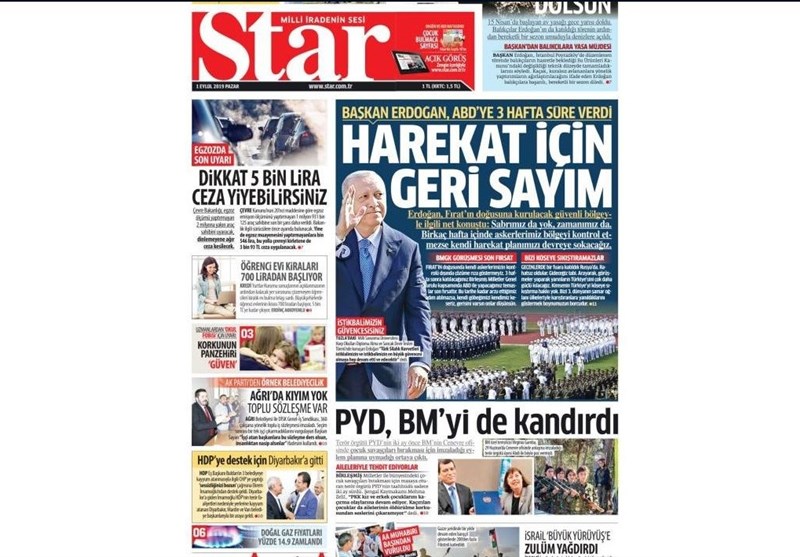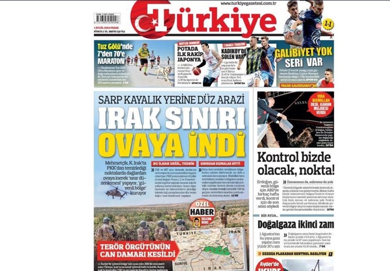 به گزارش گروه بینالملل خبرگزاری تسنیم، بسیاری از روزنامههای ترکیه، امروز در عکس و تیتر صفحه نخست، دو موضوع سخنان اردوغان در مورد منطقه امن و گران شدن مجدد نرخ گاز طبیعی را برجسته کردهاند.