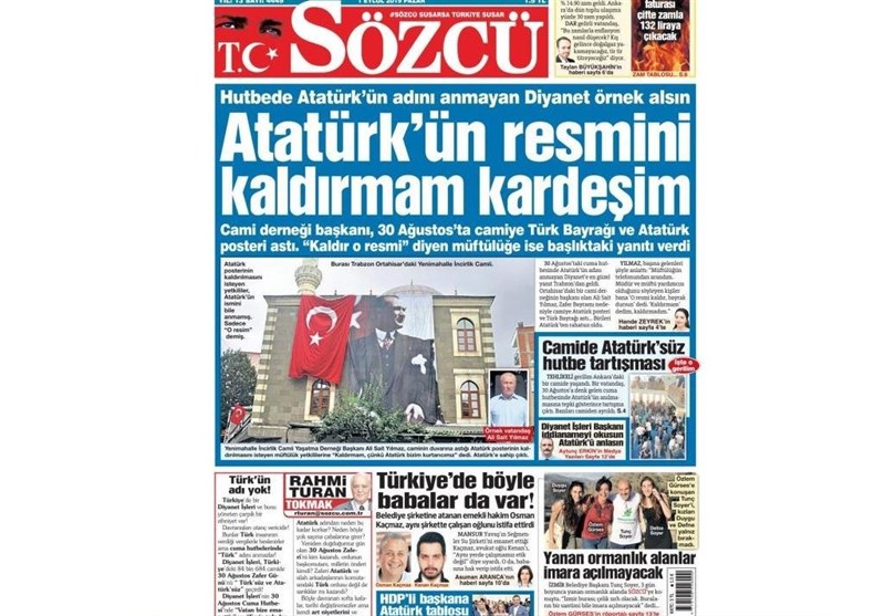 جنجال بر سر نصب بنر بزرگ عکس آتاتورک بر دیوار مسجد