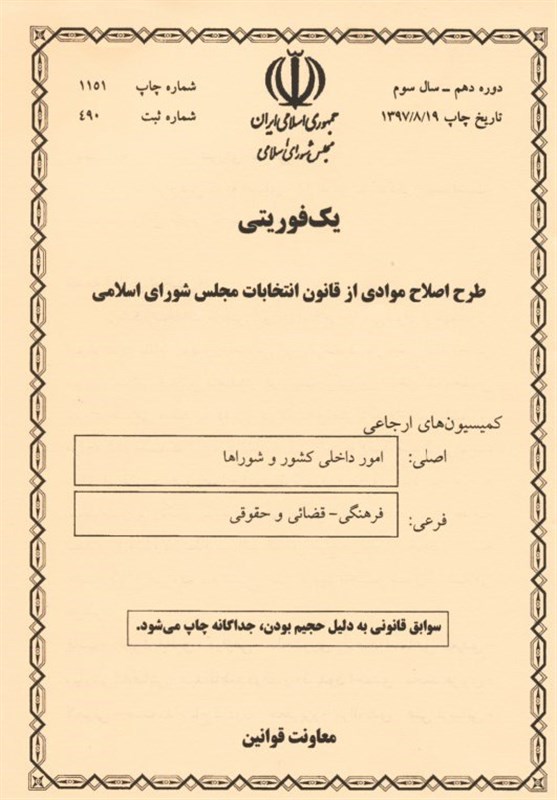 این طرح که در قالب 8 ماده و با 121 امضای تقدیم مجلس شده بود، در 2 آبان ماه 97 اعلام وصول و سپس یک فوریت آن به تصویب رسید و از بیست و یکم همان ماه برای بررسی به کمیسیون شوراهای مجلس ارجاع شد.