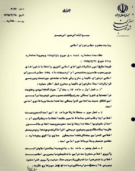 بر این اساس لایحه اصلاح قانون تشکیلات شوراهای اسلامی کشوری و انتخابات شوراهای مزبور» روز سهشنبه سیام اردیبهشت ماه 1365 در مجلس شورای اسلامی تصویب شد.