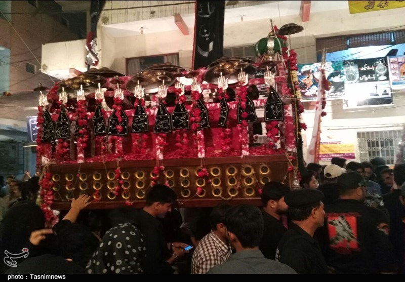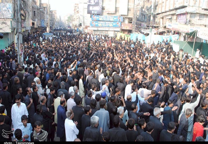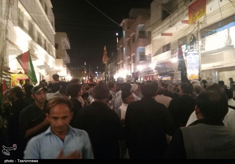 در بزرگترین شهر پاکستان یعنی کراچی امسال نیز مراسم عاشورای حسینی و دسته های عزاداری از مسیرهای مختلف تا درب ورودی حسینیه ایرانیان در حرکتند و مردم سینه زنان نام حضرت حسین بن علی (ع) را زمزمه می کنند.