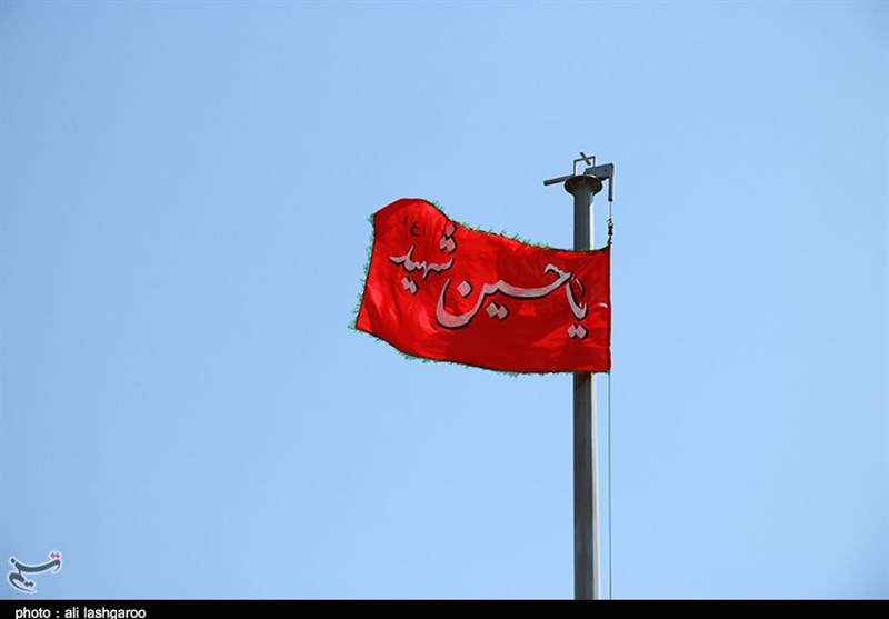 پرچم سرخ حسینی همزمان با روز عاشورا در سمنان به اهتزاز درآمد + تصاویر