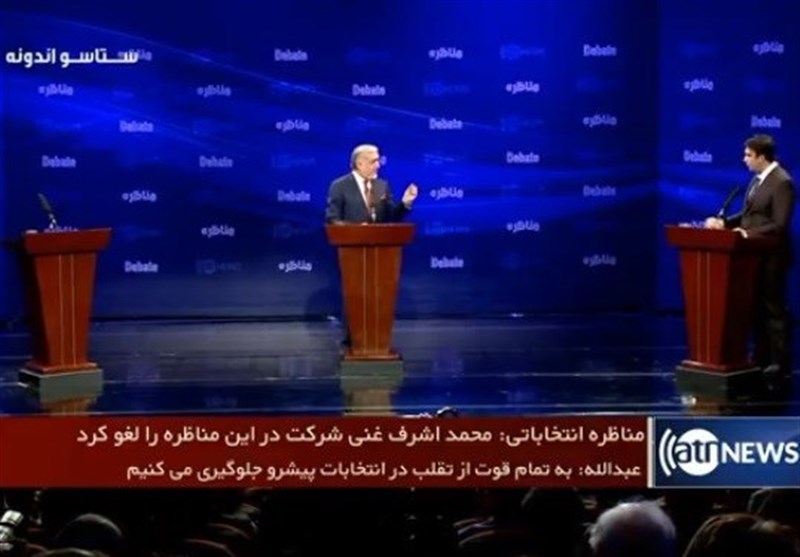 به گزارش دفتر منطقهای خبرگزاری تسنیم، «اشرف غنی» رئیس جمهور افغانستان و رئیس تیم انتخاباتی «دولتساز» قرار بود شب گذشته در یک برنامه تلویزیونی به مناظره با «عبدالله عبدلله» رئیس اجرایی دولت و رئیس تیم انتخاباتی «ثبات و همگرایی» بپردازد اما حاضر به مناظره نشد.