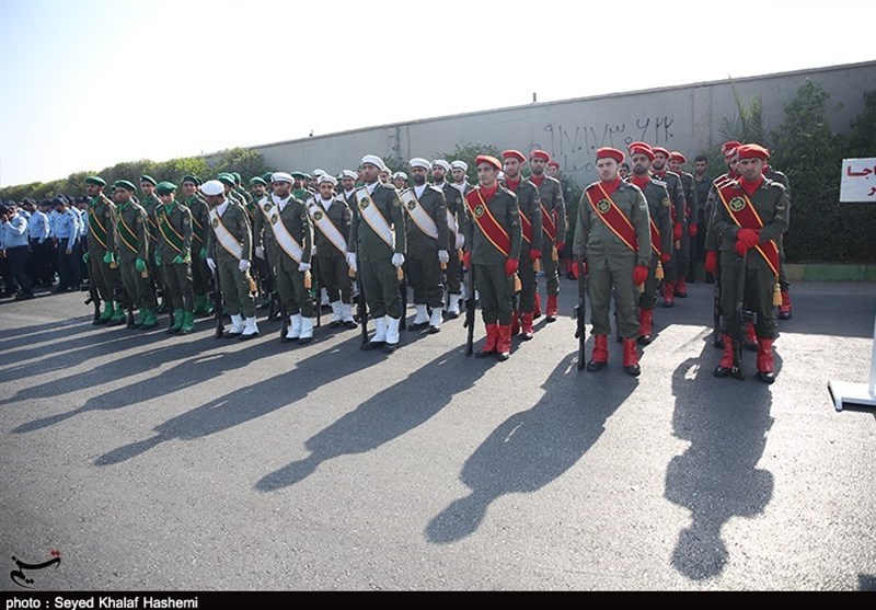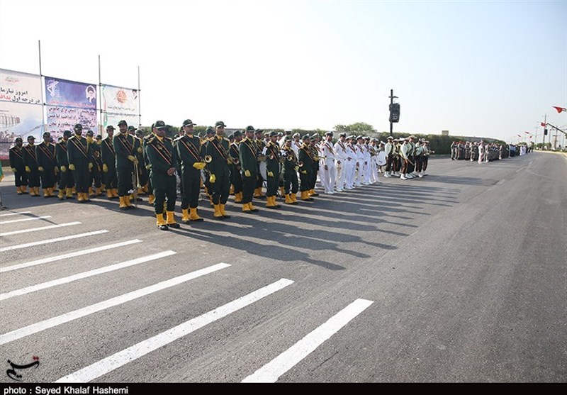 در این آیین، یگانهای منتخب نیروهای مسلح مستقر در استان بوشهر، در کنار خلیج فارس، از مقابل جایگاه رژه رفتند و آمادگی خود را برای حفاظت از دستاوردهای انقلاب اسلامی به نمایش گذاشتند.