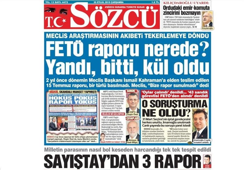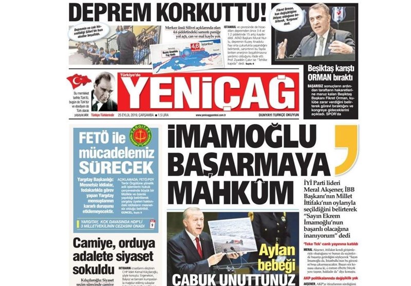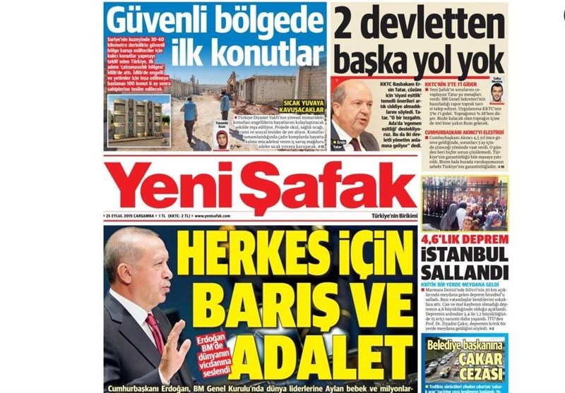به گزارش گروه بینالملل خبرگزاری تسنیم، بسیاری از روزنامههای ترکیه، امروز در عکس و تیتر صفحه نخست، سخنرانی اردوغان در سازمان ملل و زلزله استانبول را برجسته کردهاند.