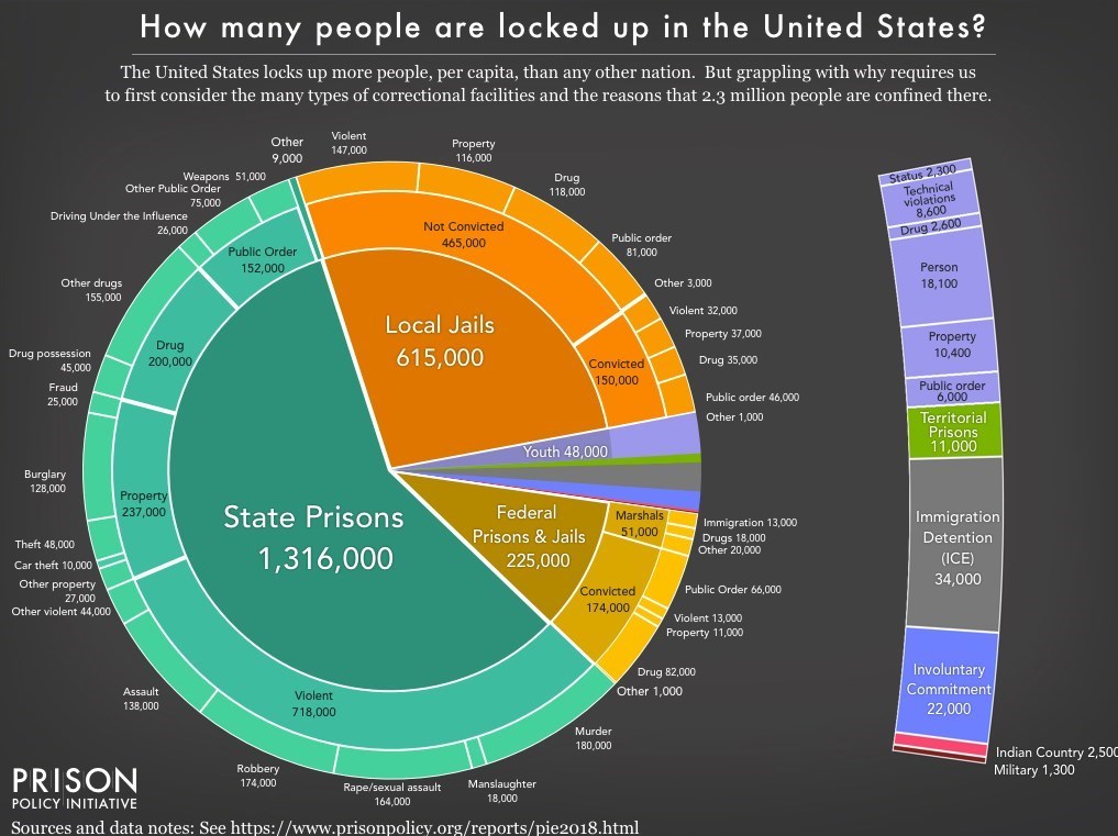 در حال حاضر 2 میلیون و 100 هزار زن تحت نظارت سیستم عدالت کیفری در آمریکا زندگی میکنند؛ زنان اکنون بخش بزرگی از جمعیت زندانها را نسبت به گذشته تشکیل میدهند و تعداد آنها در زندان 8 برابر بیشتر از سال 1980 است.