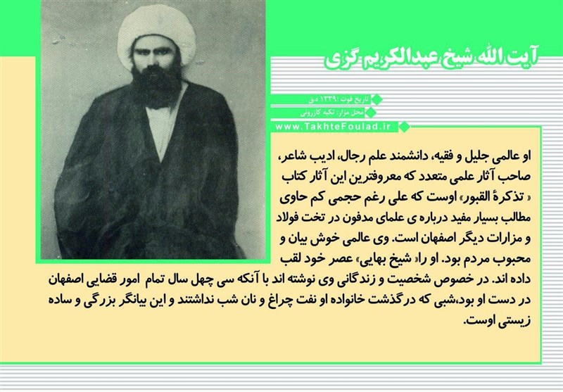برخی از این بزرگان با وجود همه اثراتی که بر جای گذاشتند هنوز هم در نزد مردم به درستی شناخته شده نیستند، خبرگزاری تسنیم در ادامه سلسله گزارشهای ستارگان مدفون در تخت فولاد در این گزارش به معرفی آیتالله ملا عبدالکریم گزی میپزدارد.