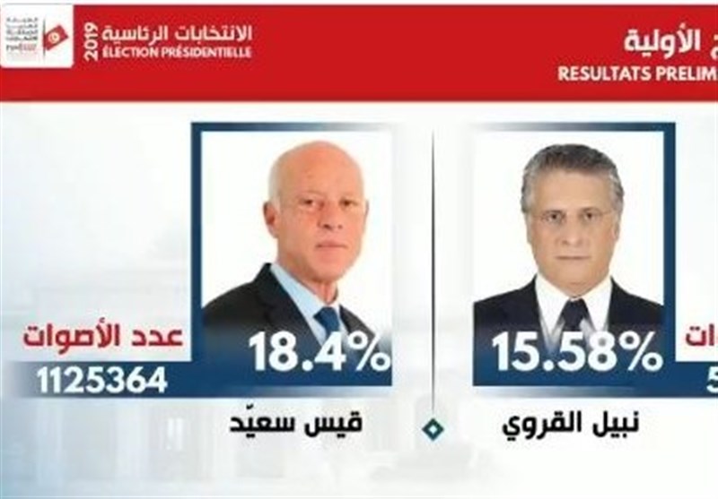 قیس سعیّد و نبیل القروی نامزدی که همچنان در زندان به سر می‌برد، به دور دوم انتخابات ریاست جمهوری راه یافته‌اند.