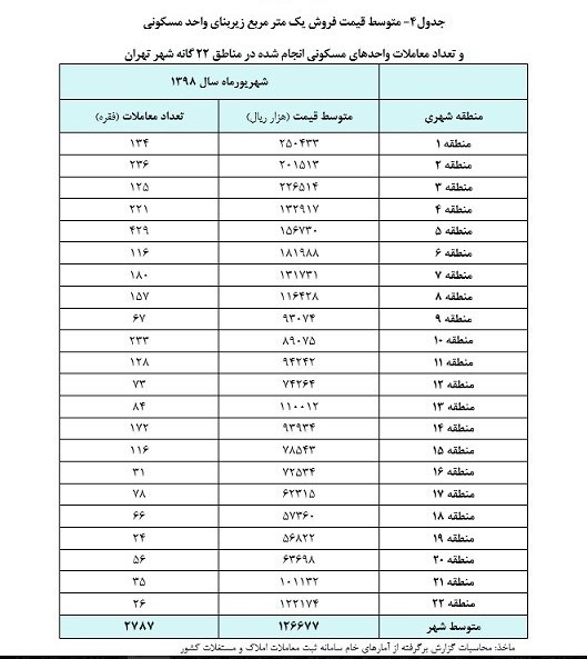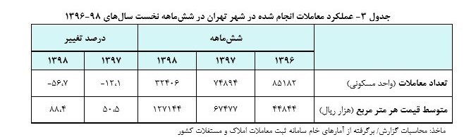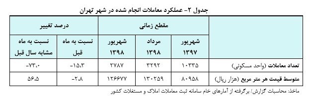 «گزارش تحولات بازار مسکن شهر تهران در شهریورماه سال 1398»، برگرفته از آمارهای خام سامانه ثبت معاملات املاک و مستغلات کشور است که توسط اداره بررسیها و سیاستهای اقتصادی بانک مرکزی تهیه و منتشر شده میشود.