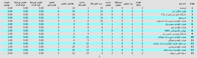 تیم هیئت تکواندو استان ایلام 2 – تیم هیئت تکواندو جنوب‌شرق 6