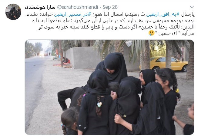 ** سالهای اول، ما در پیادهروی اربعین شرکت میکردیم تا به زیارت حسین ع برویم. هر سال که آمدیم اما، وابستگی ما به این مسیر، بیشتر شد. حالا اما ما به اربعین وابسته شدهایم و پس از اربعین، کارمان به روزشماری میرسد. هی روزها و هفتهها را میشماریم تا سال بعد. #در_مسیر_اربعین