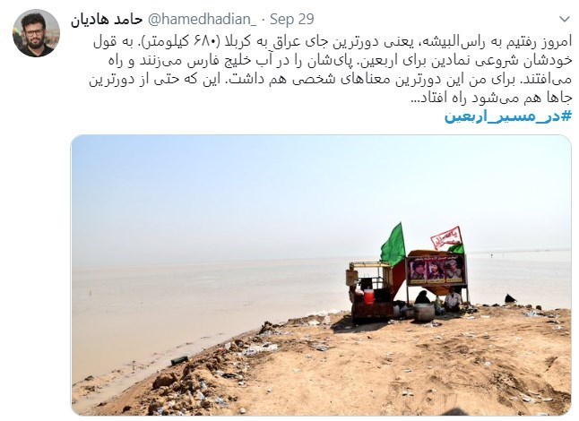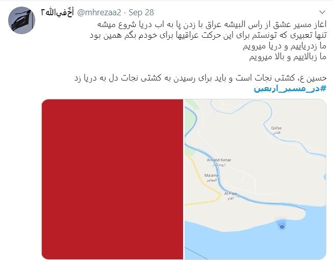 ** کاملترین مصداق #پیادهروی_عمیق اربعین در عراق شروع حرکت از استان بصره است، از شهر بصره یا حتی دورتر از فاو و از حاشیهی خلیج فارس از رأسالبیشه هر سال افتتاحیهی عراقی پیادهروی اربعین در صبح 28 محرم از راس البیشه شروع می شود. #در_مسیر_اربعین