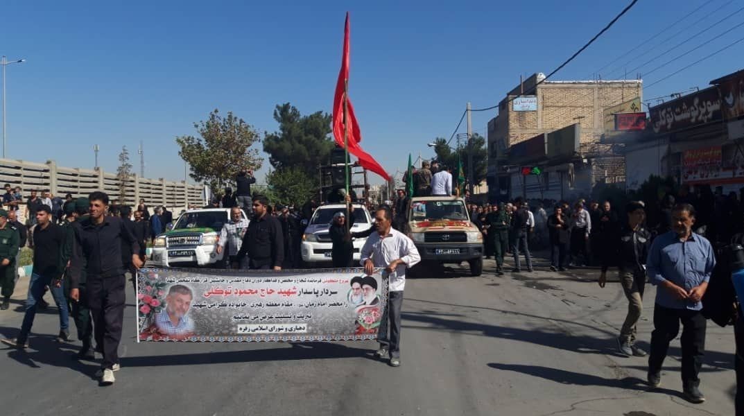 مراسم تشییع و خاکسپاری شهید محمود توکلی صبح امروز؛ شنبه 13 مهرماه 98 از ساعت 8:30 آغاز شد. این مراسم از میدان جمهوری شهر فلاورجان به سمت محل زادگاهش روستای خیرآباد برگزار شد.