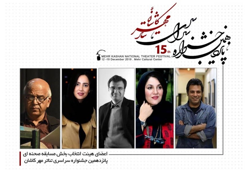 هیئت انتخاب بخش صحنه‌ای پانزدهمین جشنواره سراسری تئاتر "مهر کاشان" از سوی خیام وقار کاشانی، دبیر این جشنواره معرفی شد که از 21 تا 28 آذرماه برگزار می‌شود.