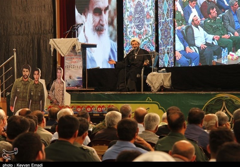 در این آیین یکی از استادان حوزه و دانشگاه با گرامیداشت یاد و خاطره 2 هزار شهید استان بوشهر و شهدای حماسه 16 مهر که با شهادتشان ابهت پوشالی آمریکا را شکستند گفت:دفاع مقدس ملت ایران شکست ابهت آمریکا بود و با این حماسه رزمندگان امروز دیگر کسی آمریکا را قدرت مطلقه جهان نمی‌داند.