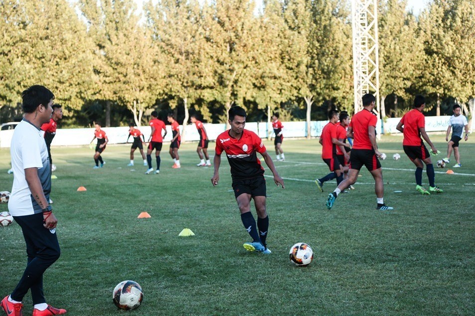 بازیکنان تیم ملی فوتبال کامبوج زیر نظر کیسوکه هوندای ژاپنی تمرینات سنگینی برای بازی انتخابی جام جهانی 2022 برابر ایران انجام می‌دهند.
