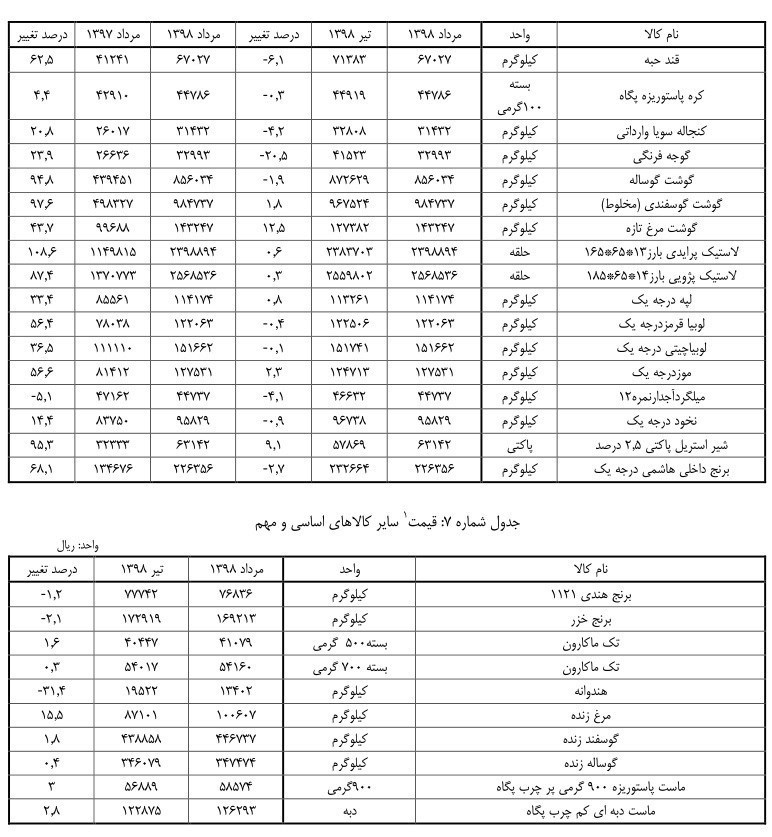 *جزئیات تغییرات قیمتی انواع کالاهای اساسی در مرداد ماه سال جاری بهشرح زیر است: