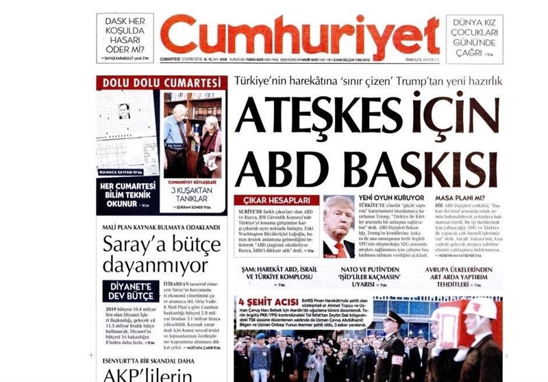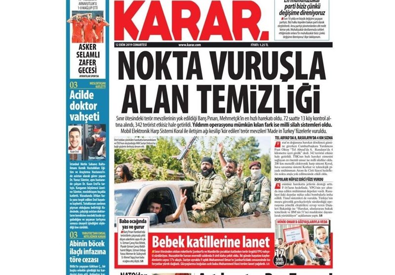 به گزارش گروه بینالملل خبرگزاری تسنیم، بسیاری از روزنامههای ترکیه، امروز در عکس و تیتر صفحه نخست، جنگ در شمال سوریه را برجسته کردهاند.