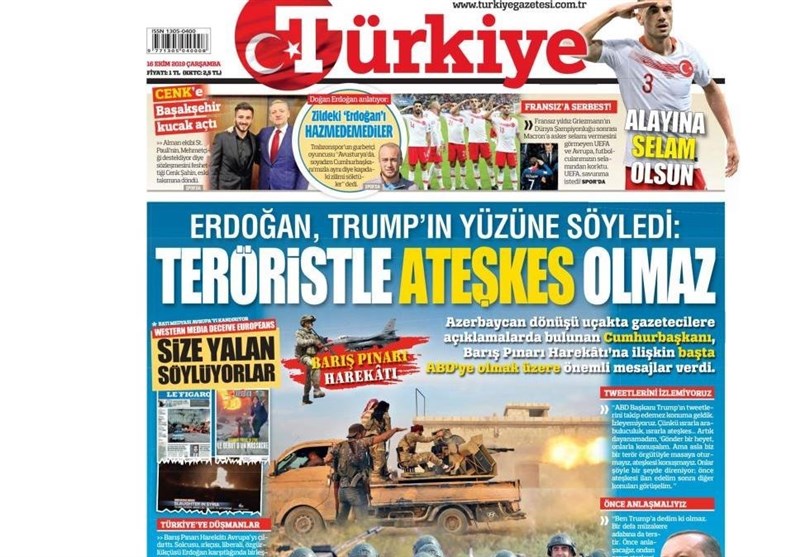 به گزارش گروه بین‌الملل خبرگزاری تسنیم، بسیاری از روزنامه‌های ترکیه، امروز در عکس و تیتر صفحه نخست، واکنش‌ها در مورد تجاوز ارتش این کشور به مناطق شرق فرات را برجسته کرده‌اند.