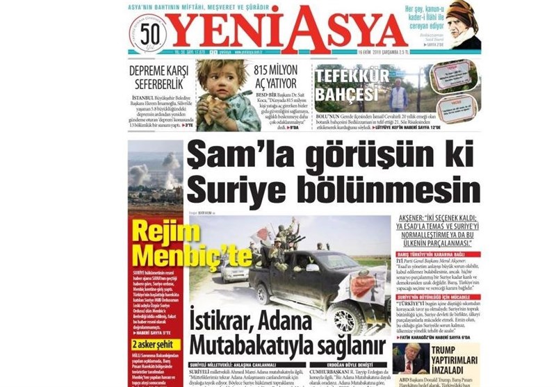 نشریات ترکیه در یک نگاه| گفت‌وگو با دمشق٬ تنها راه چاره/ اردوغان: تا مرز عراق پیش می‌رویم
