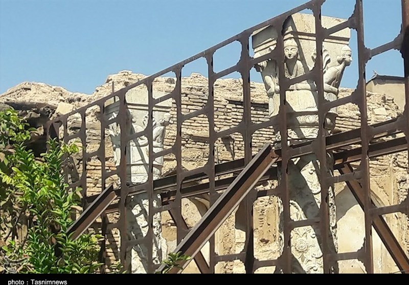 هم اکنون ضلع شمالی بنا تخریب شده و از آن فقط دو ستون سنگی باقی مانده است. این ستون‌های سنگی به واسطه این که دارای نقوشی نیز هستند بسیار نفیس و کم نظیر محسوب می‌شوند که در حال حاضر بدون هیچ حفاظتی قرار دارند.  این بنای تاریخی با شماره 910 در سال 1351 جزء آثار ملی به ثبت رسیده است.