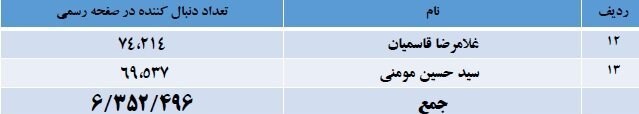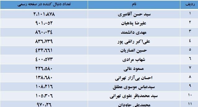 تعداد دنبالکنندگان صفحات رسمی سخنرانان پرطرفدار