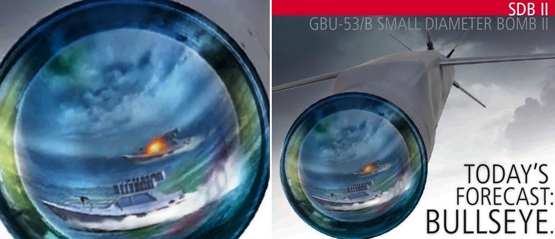 تصویری تبلیغاتی از GBU-53 مربوط به نزدیک به یک دهه پیش که قایقهای پرسرعت سپاه در شیشه حسگر آن نقش بسته است
