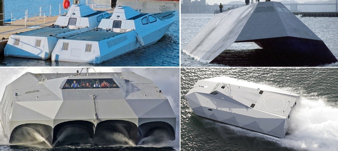 شکل ظاهری تعدادی از شناورهای آزمایشی و عملیاتی که با اصول پنهانکاری راداری ساخته شدهاند