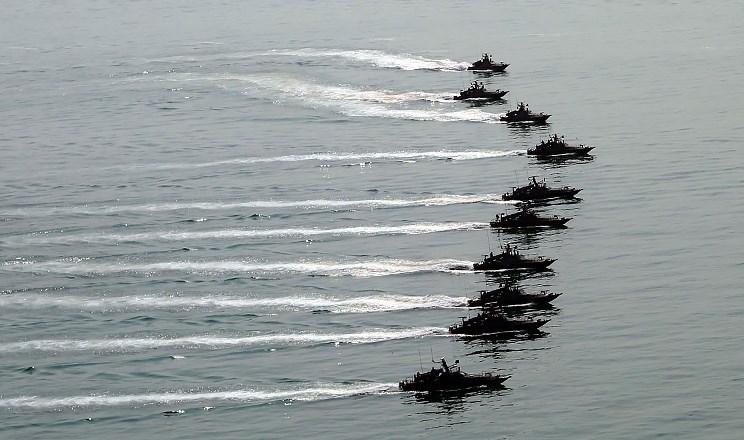 تصویری از حرکت تهاجمی گروهی شناورهای پرسرعت سپاه