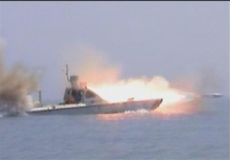شناور بدون سرنشین و پرسرعت «یا مهدی(عج)» در حال شلیک راکت سنگین فلقــ1