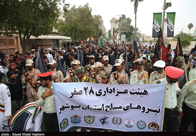 بر اساس گزارش خبرنگاران تسنیم از شهرستانهای 10 گانه استان بوشهر مراسم عزاداری 28 صفر در مناطق شیعه و سنینشین استان با شکوه خاصی برگزار شد بهگونهای که از جلوههای زیبای عزاداری 28 ماه صفر در استان بوشهر وحدت شیعه و سنی و شرکت و حضور منسجم آنان در مراسم عزاداری ائمه اطهار(ع) است.