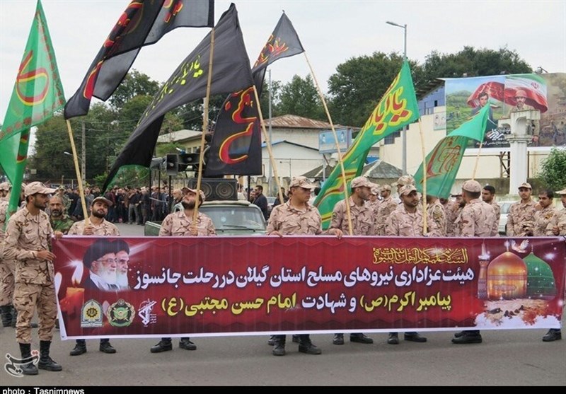 دستهجات و هیئتهای عزاداری از مقر سپاه ناحیه مرکزی رشت حرکت کرده و به جمع عزاداران و محبان پیامبراکرم(ص) و اهلبیت عصمت و طهارت در مصلی امام خمینی(ره) رشت پیوستند.
