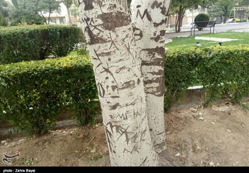 به گزارش خبرگزاری تسنیم از زنجان، مرتضی، آشا، زهرا، بهاره و علی تنها کلمات خوانایی بود که بر روی تنه چند درخت که در کنار هم برای زیبایی پارک زندگی می کردند، حک شده بود و بقیه حروف و علائم بی معنا، اما حتی دیدن کلمات معنا دار هم بر روی تنه درختان بی مفهوم و قابل درک نبود.