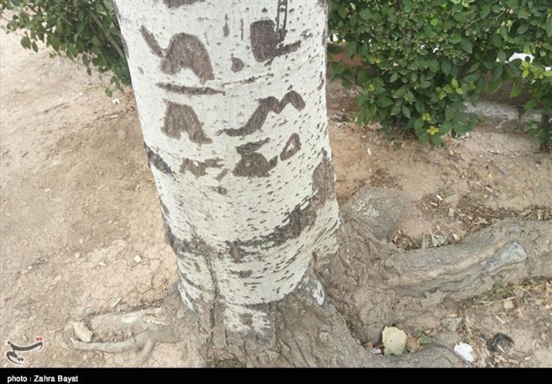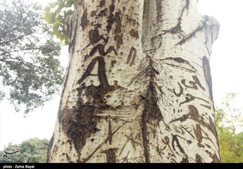 نوشتن یادگاری بر تنه درختان و زخمی کردن آن ها علاوه بر نداشتن معنا و مفهوم خاص موجب ایجاد صحنه ناخوشایند بر چهره این تصفیه‌کننده‌های طبیعی هوا می‌شود.