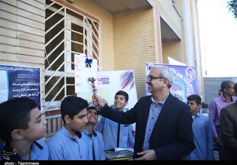 در این آیین زنگ پدافند غیرعامل، به صورت نمادین در مدرسه مصحلیان بوشهر با حضور دانش آموزان نواخته شد.
