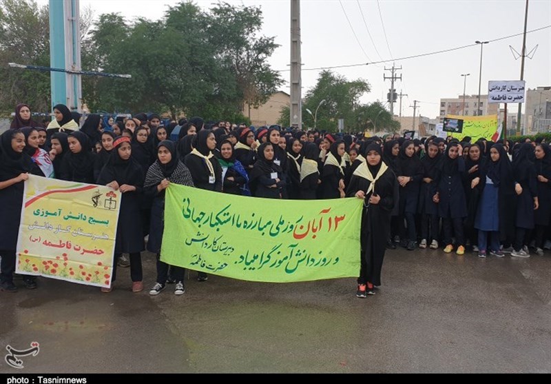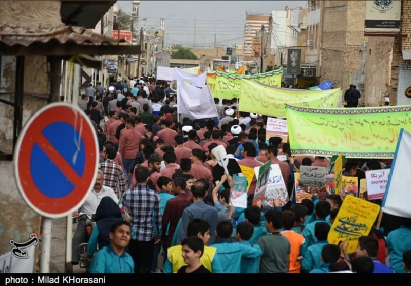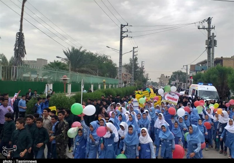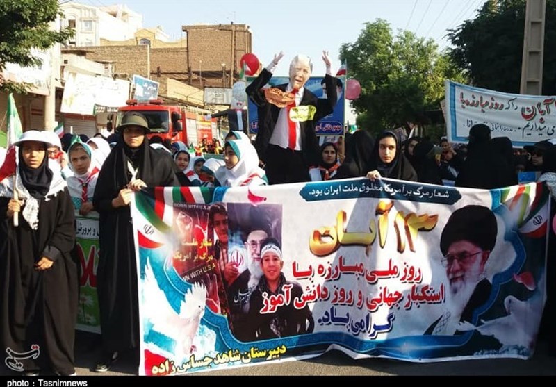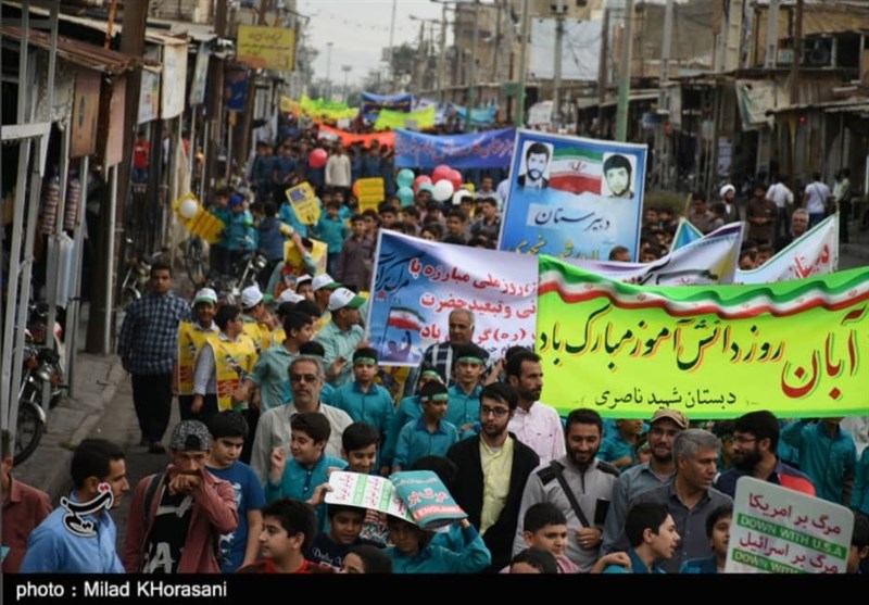 به گزارش خبرگزاری تسنیم از اهواز، امروز 13 آبان‌ماه دانش‌آموزان ، دانشجویان و سایر اقشار مردم بیش از 60 نقطه از خوزستان با حضور در راهپیمایی با شکوه 13 آبان‌ماه نسبت به رفتار نظام‌های سلطه‌جو و مستکبر اعلام انزجار کردند.