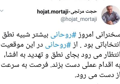 حجت مرتجی از خبرنگاران خبرگزاری دولتی ایرنا با انتخاباتی خواندن اظهارات روز گذشته روحانی نوشته است: "سخنرانی امروز روحانی بیشتر شبیه نطق انتخاباتی بود. از روحانی در این موقعیت انتظار میرود بهجای نطق و تهدید به افشا، به اقدام عملی دست بزند. فرصت بهسرعت از دست میرود".