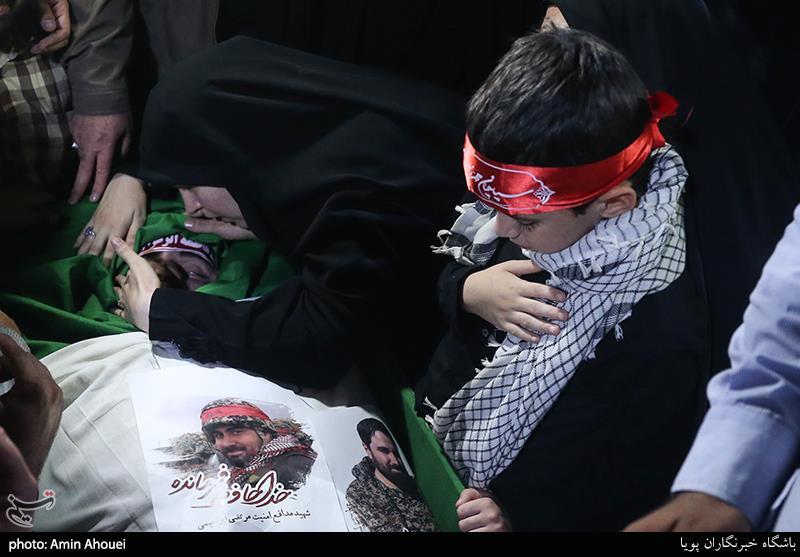 به گزارش خبرنگار فرهنگی خبرگزاری تسنیم، پسر 7 ساله شهید مرتضی ابراهیمی شهید مدافع امنیت کشور بر بالای پیکر پدر شهیدش، مداحی میکند. صدرا که حالا تازه لقب فرزند شهید گرفته است هنوز در شوک از دست دادن پدر است اما در کنار مادرش این داغ عظیم را با صلابت یک انقلابی پشت سر میگذارد. او در روزی که همه برای وداع با پدرش صف کشیده بودند. سربند سرخ شهادت بسته و در بالای پیکر پدر مداحی میکند. فیلم مداحی او در ادامه قابل مشاهده است: