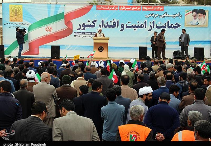 به گزارش خبرگزاری تسنیم از زاهدان، مردم شیعه و سنی زاهدان با مشت‌های گره خورده امروز به صورت خودجوش به خیابان آمدند و با برپایی راهپیمایی حمایت خود را امنیت و اقتدار کشور اعلام کردند و پاسخ دندان‌شکنی به یاوه‌گویی دشمنان ایران اسلامی دادند.