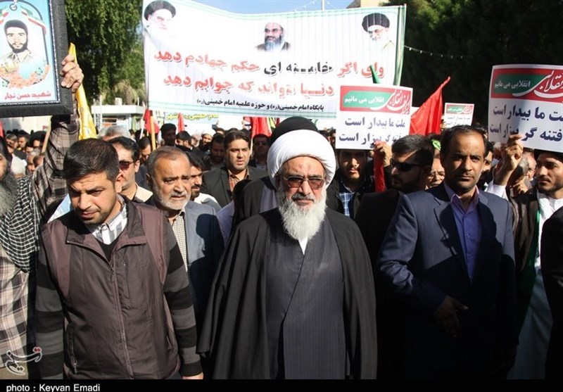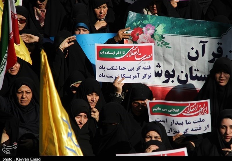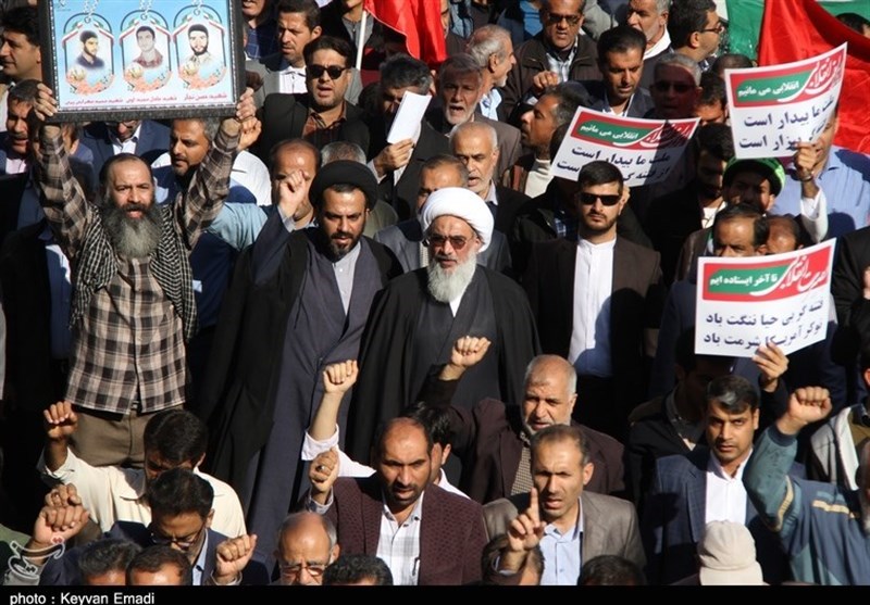 مردم ولایت مدار بوشهر با سردادن شعارهای مرگ بر منافق، مرگ بر فتنهگر، ملت ما بیدار است از آمریکا بیزار است، ما همه باهم هستیم پشت ولایت هستیم ، خشم و انزجار خود را از اقدامهای اخیر توطئهگران اعلام کردند.