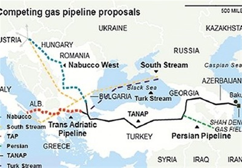 تحریمهای مختلف ایالات متحده روی روسیه و خطوط لوله انتقال گاز از این کشور به اتحادیه اروپا، روی خطوط "جریان شمالی" موجب توجه بیشتر واردکنندگان انرژی اروپایی به سمت منابع گازی دریای خزر و خطوط انتقال آن، تاناپ و تاپ، از طریق آذربایجان و ترکیه و یونان به اروپا شده است.