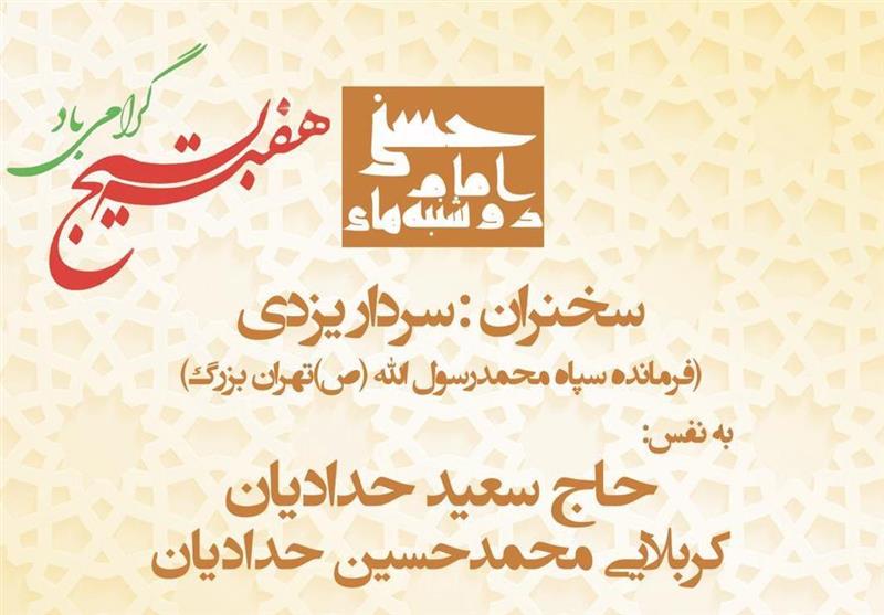 بر اساس این گزارش، این مراسم با سخنرانی سردار یزدی فرمانده سپاه محمد رسول الله(ص) تهران بزرگ و مدیحهسرایی سعید حدادیان و محمدحسین حدادیان امشب دوشنبه 4 آذر از ساعت 20:30 برگزار خواهد شد.